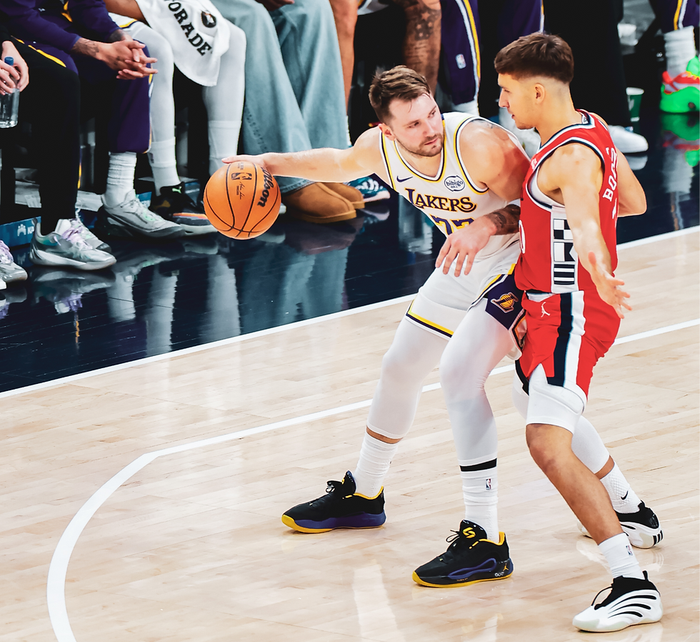Luka Doncic from the Lakers is defended by the Clippers' Bogdan Bogdanović. Photo by Savion Washington for Tangent Zine.